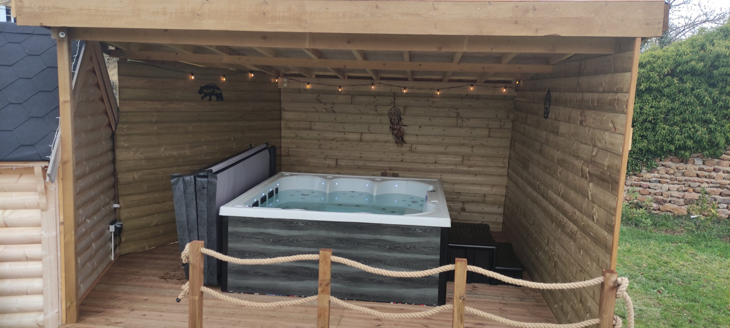 Chaque cabane est entièrement équipée : sanitaires privés, chauffage, mobilier de jardin… Vous pourrez profiter de votre jacuzzi privatif, idéal pour vous détendre après une journée de randonnée ou d’exploration. Deux cabanes peuvent accueillir jusqu’à 4 personnes dont une avec jacuzzi privatif, et une autre « spéciale couple » donc pour 2, avec aussi jacuzzi privatif. Le linge de lit, de toilette et les produits d’accueil sont fournis. Pour un séjour encore plus agréable, un petit-déjeuner gourmand vous est servi chaque matin.